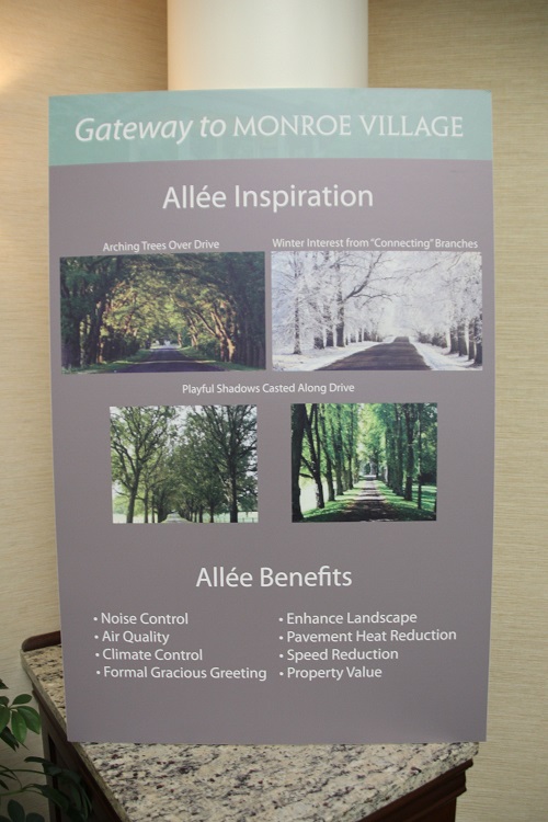 Monroe Villages’ entrance drive now includes 16 stately Kentucky Coffeetrees, evergreen shrubs, and lush grass landscape throughout. This reimagined “Gateway to Monroe Village” has become a reality thanks to the generosity of resident donations, exemplifying their commitment to making a cozy, inviting atmosphere for all.