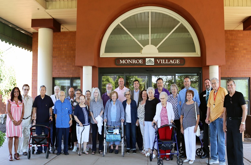Monroe Village, a Springpoint Life Plan Community, recently hosted a ribbon cutting ceremony to celebrate the reveal of its new entrance drive, deemed the “Gateway Project.” Funded primarily through the support of residents, the community’s revitalized entranceway provides a stunning, nature-enhanced “welcome” into the community surrounded by astounding Kentucky Coffeetrees.